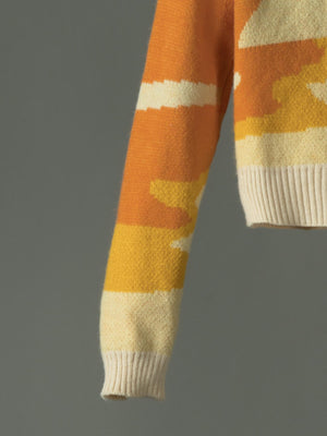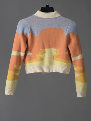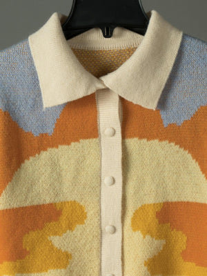 Cárdigan de Punto Cuello Peter Pan con Estampado de Atardecer