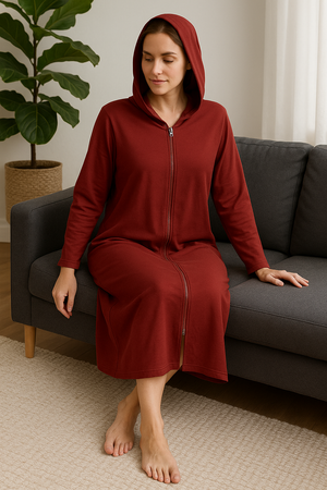 Vestido de Dormir Largo con Capucha y Cremallera para Mujer